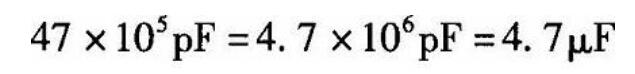 ①采用三位數(shù)進(jìn)行標(biāo)注,單位為pF。前兩位為有效數(shù)字,后一位為有效數(shù)字乘以10的冪次,如475表示47×105pF,即4.7uF。